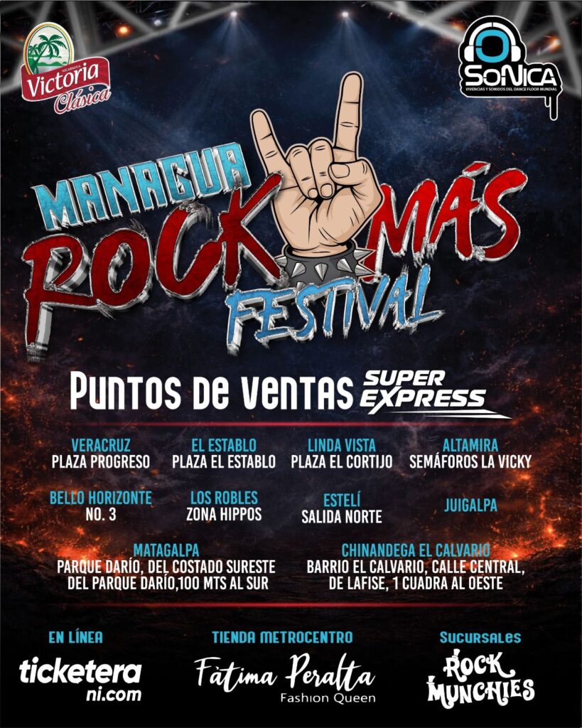 El Managua Rock Más Festival se perfila como uno de los eventos musicales más potentes de 2026 en Nicaragua. El próximo 27 de marzo de 2026, el parqueo del Estadio Nacional de Fútbol será testigo de más de 7 horas de rock y metal en vivo, con dos escenarios, un cartel internacional de alto nivel y una selección de las bandas más fuertes de la escena nacional. Todo bajo la producción de SoNica Conciertos Nicaragua y CA.